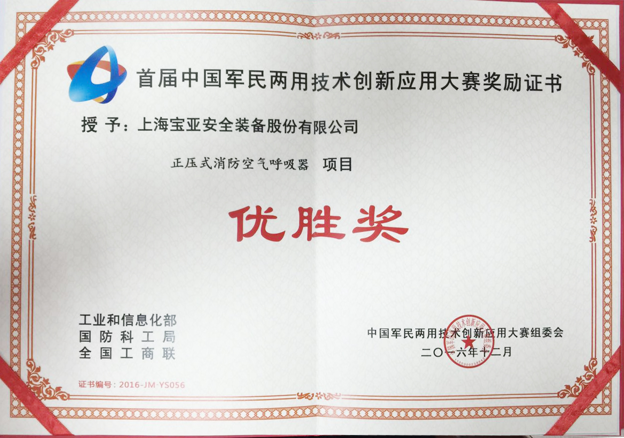 2016年12月16日,首屆軍民兩用技術(shù)創(chuàng)新應(yīng)用大賽正式落下了帷幕,經(jīng)過(guò)初賽、半決賽和決賽層層篩選,上海寶亞安全裝備股份有限公司披荊斬棘,從700余個(gè)項(xiàng)目中中脫穎而出,奪得此次大賽優(yōu)勝獎(jiǎng)項(xiàng)目。