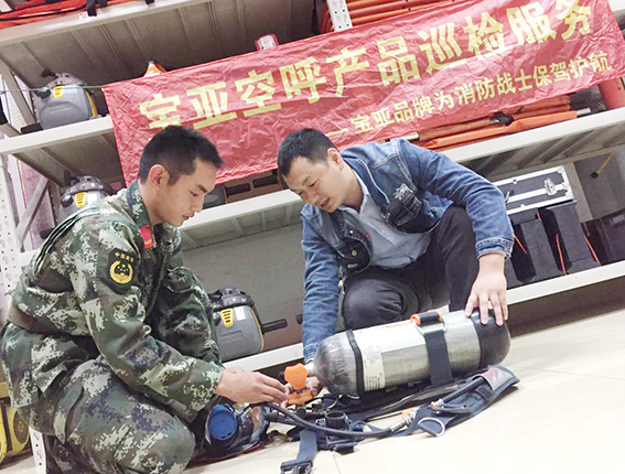 黨的十九大召開之際,消防部隊(duì)全面進(jìn)入備戰(zhàn)狀態(tài),確保十九大消防安全。上海寶亞組織了全國(guó)范圍內(nèi)空氣呼吸器巡檢工作,勇于擔(dān)當(dāng)社會(huì)責(zé)任,為各級(jí)消防官兵送去寶亞的關(guān)懷與服務(wù)。寶亞人深知消防裝備的安全與否切身影響到消防員的生命安全。