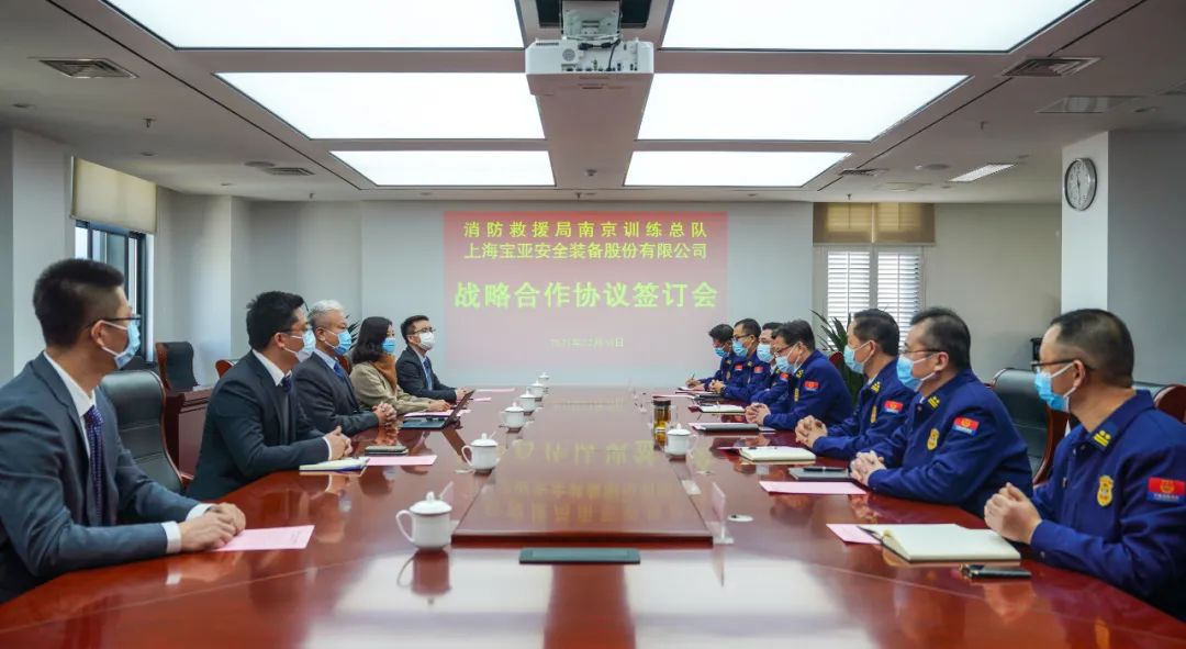 為適應(yīng)新時(shí)代大國(guó)應(yīng)急管理體系建設(shè)要求,進(jìn)一步拓寬在裝備研發(fā)、人才培育、職業(yè)技能鑒定和裝備示范應(yīng)用等領(lǐng)域的發(fā)展,2021年12月30日,應(yīng)急管理部消防救援局南京訓(xùn)練總隊(duì)與上海寶亞安全裝備股份有限公司簽訂了戰(zhàn)略合作協(xié)議,并授予上海寶亞為 “實(shí)踐教學(xué)訓(xùn)練基地”。
