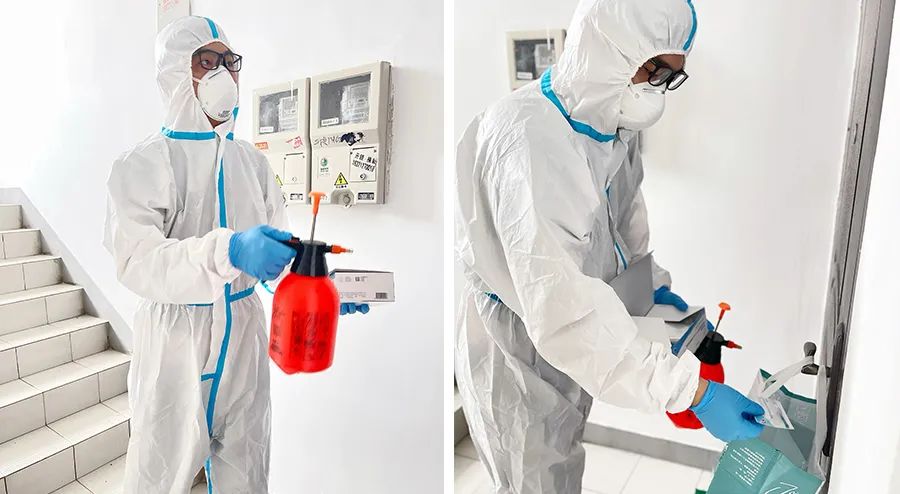 他們每天巡邏,勸導(dǎo)居民回家,保證“足不出戶”。他們風(fēng)雨無阻全天值班,緊盯封控樓棟,對(duì)閉環(huán)管理的樓棟配送物資。他們在密不透風(fēng)的防護(hù)服里汗流浹背,每天辛勤得在樓道里做消殺,按家按戶發(fā)送物資。