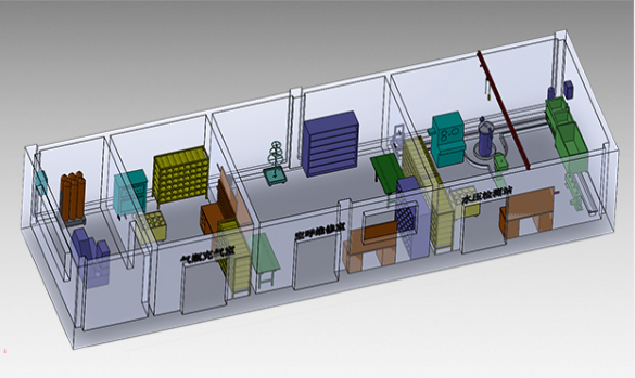 兩室一站組成:氣瓶充氣室、空氣呼吸器維修室、氣瓶水壓檢測站。