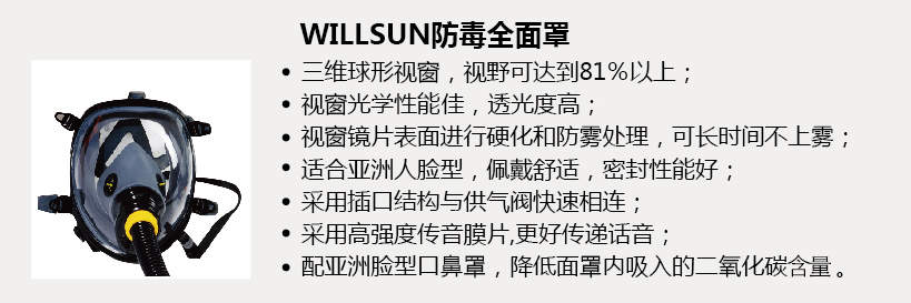 2. 主要由送風(fēng)主機(jī)、波紋軟管、WILLSUN防毒全面罩、流量調(diào)節(jié)閥組成;