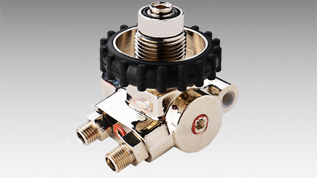 減壓器的功能是將氣瓶內(nèi)高壓空氣減至供氣閥正常工作時所需的壓力(0.7±0.25)MP。