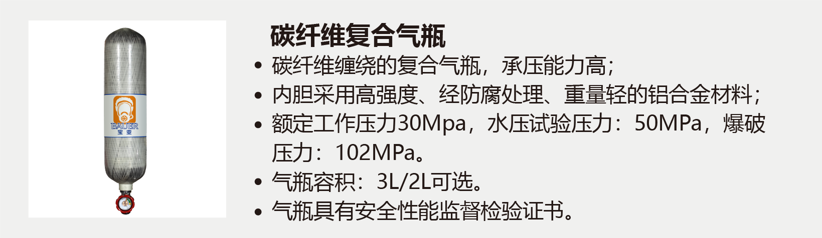 3. 氣瓶壓力:30MPa;