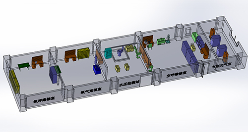 四室一站:空氣呼吸器充氣室、氧氣呼吸器充氣室、空氣呼吸器維修室、氧氣呼吸器維修室、氣瓶水壓檢測(cè)站